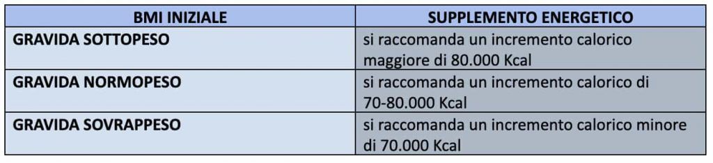 Si precisa che, l’aumento del fabbisogno energetico deve essere il più possibile graduale e seguire le fasi fisiologiche della gravidanza stessa.