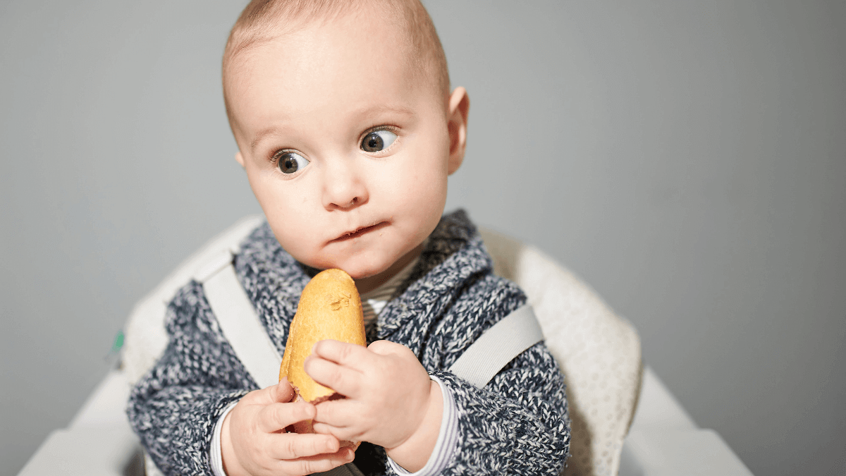 Soddisfatti questi parametri, il vostro bambino si dimostra interessato molto al vostro cibo? si allunga disperatamente per afferrarlo dal vostro piatto? istintivamente provvede a portarselo alla bocca, con le manine? Probabilmente avrete il candidato ideale per iniziare l’autosvezzamento!